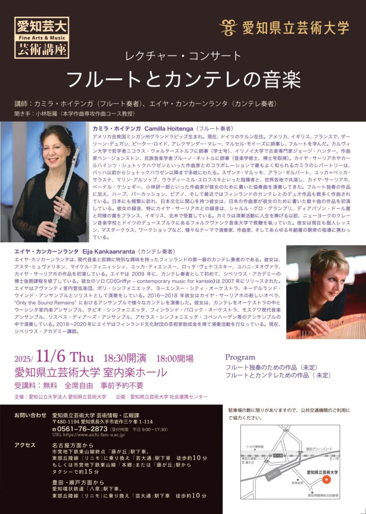 2025/11/06 愛知県立芸術大学芸術講座 レクチャー・コンサート フルートとカンテレの音楽(愛知)